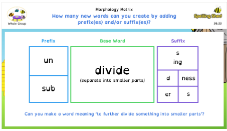 There are lessons throughout the scheme that consolidate children’s knowledge of common morphemes such as root formations, prefixes and suffixes.