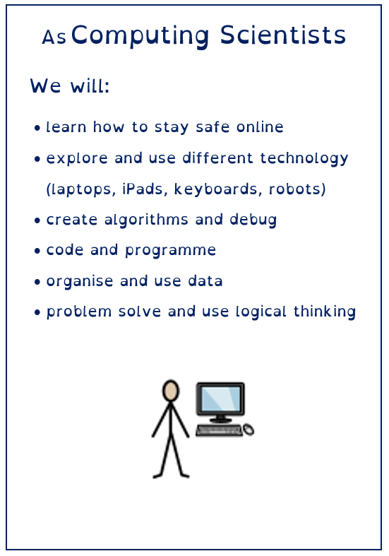 To ensure high standards of teaching and learning in computing, we implement a progressive curriculum throughout the whole school. Implementing the computing curriculum aligns with the 2014 Primary National Curriculum requirements for KS1, KS2 and the Foundation Stage Curriculum in England. This provides a broad framework and outlines the knowledge and skills taught in each key stage.