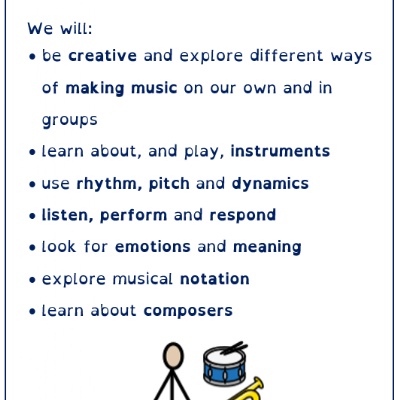 The overarching aim for Music in the national curriculum is to provide a high-quality music education which should engage and inspire pupils to develop a love of music and their talent as musicians, and so increase their self-confidence, creativity and sense of achievement. As pupils progress, they should develop a critical engagement with music, allowing them to compose, and to listen with discrimination to the best in the musical canon.
