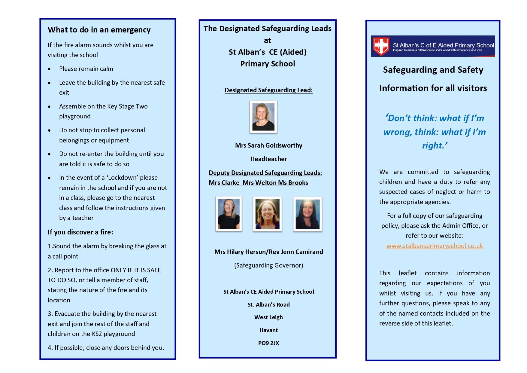 Safeguarding is all about keeping children safe from any type of harm. This could be physical abuse, sexual abuse, emotional abuse, neglect or any form of radicalisation, for example. St Alban’s staff are vigilant and take their safeguarding responsibilities very seriously.