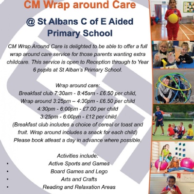 Wraparound childcare is provided for St Alban's School by CM Sports. Wraparound care is available both before and after school.